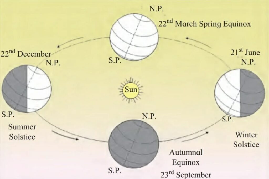 Ans: When it is summer in South Africa, Australia also has summer. - Duration of daytime is less on the vernal and autumnal equinoxes.