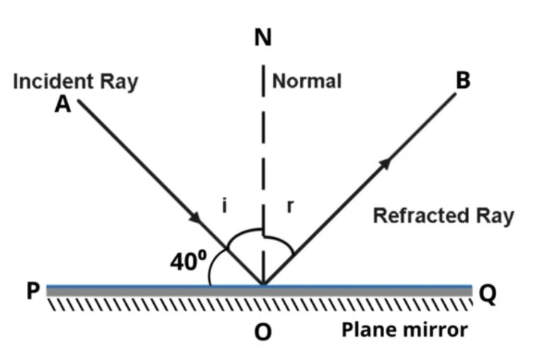 (a) If the angle between the plane mirror and the incident ray is 40°, what are the angles of incidence and reflection?