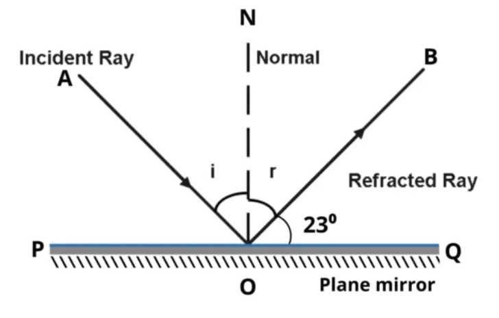 (b) If the angle between the mirror and the reflected ray is 23°, what is the angle of incidence?